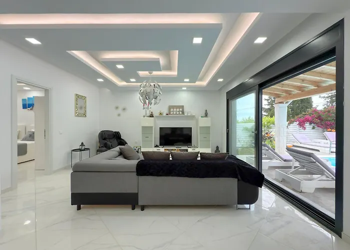 Situat la aproximativ 25 de minute de mers pe jos de Mavroudis Family Museum and Modern Olive Oil Press, Diamond Luxury Villa Corfu cu 3 dormitoare, are o piscină privată, cu sală de tratament, un jacuzzi și băi publice fierbinți. Oferind acces la un patio, cazarea invită oaspeții să viziteze Castle of Gardiki, situat la 10 minute cu mașina.